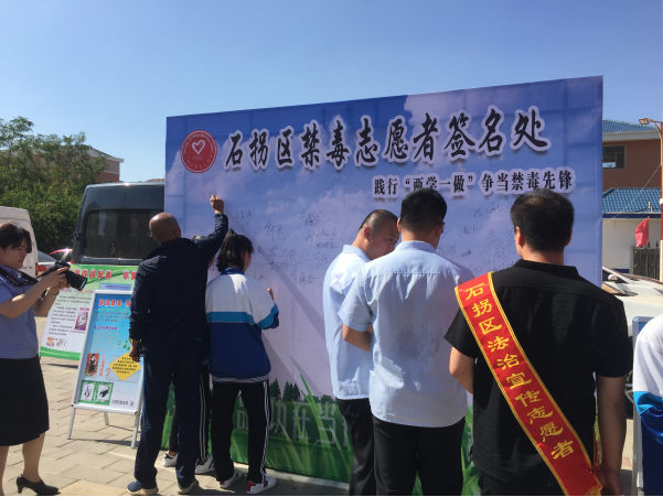 为贯彻党的群众路线教育实践活动,进一步提高广大村民识毒、防毒、拒毒的意识和能力,提升辖区村民参与与禁毒斗争的合心力、努力创建"无毒"社区,抵制毒品,参与禁毒的主题活动,帮助群众认清毒品的危害,2018年6月26日,大德恒司法所配合区司法局开展禁毒宣传活动。
